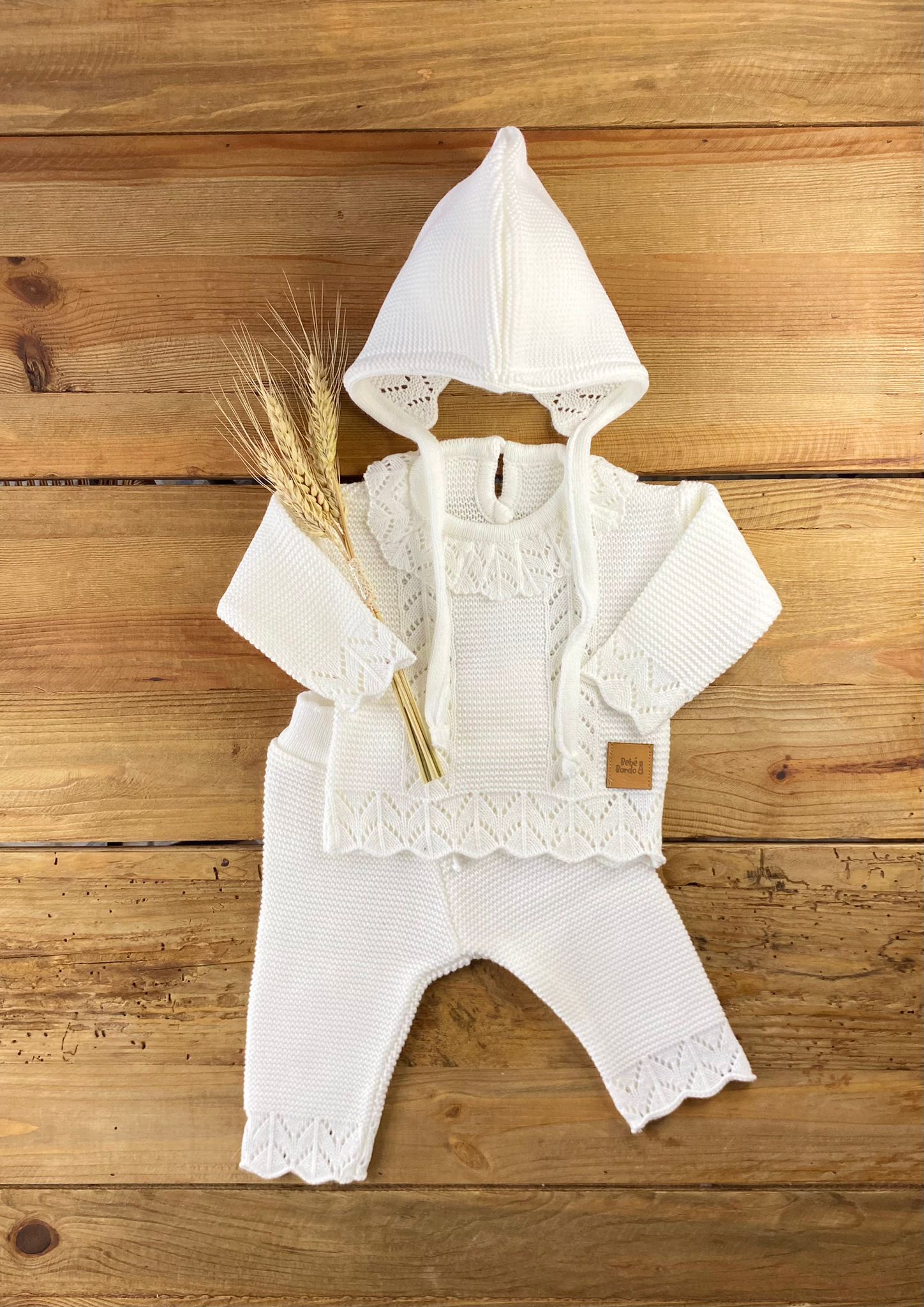 Incluye muda 3 piezas con capota, bata y pelele.